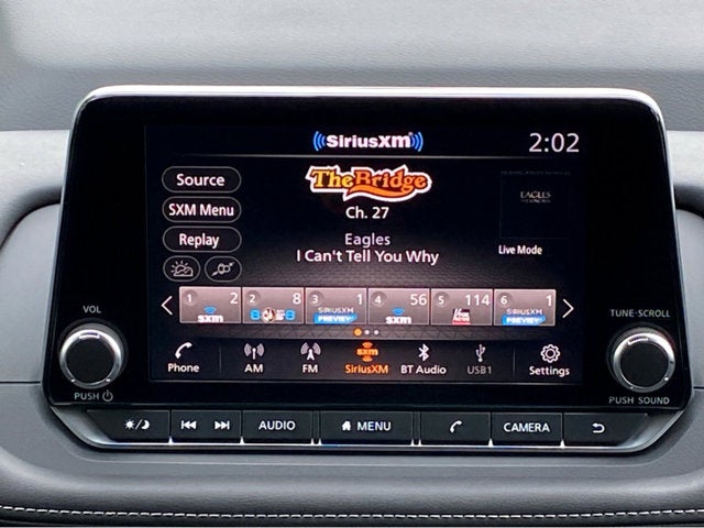 • Radio: AM/FM NissanConnect -inc: 6 speakers plus 2 tweeters, Apple CarPlay, Android Auto, 8" color touch screen display, Bluetooth®, 2 front USB type-C, Wi-Fi hotspot and NissanConnect Services powered by SiriusXM