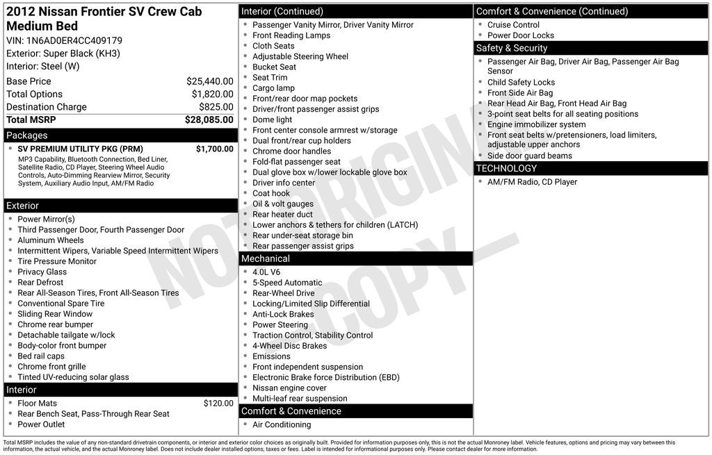 - Vehicle Name: Nissan Frontier