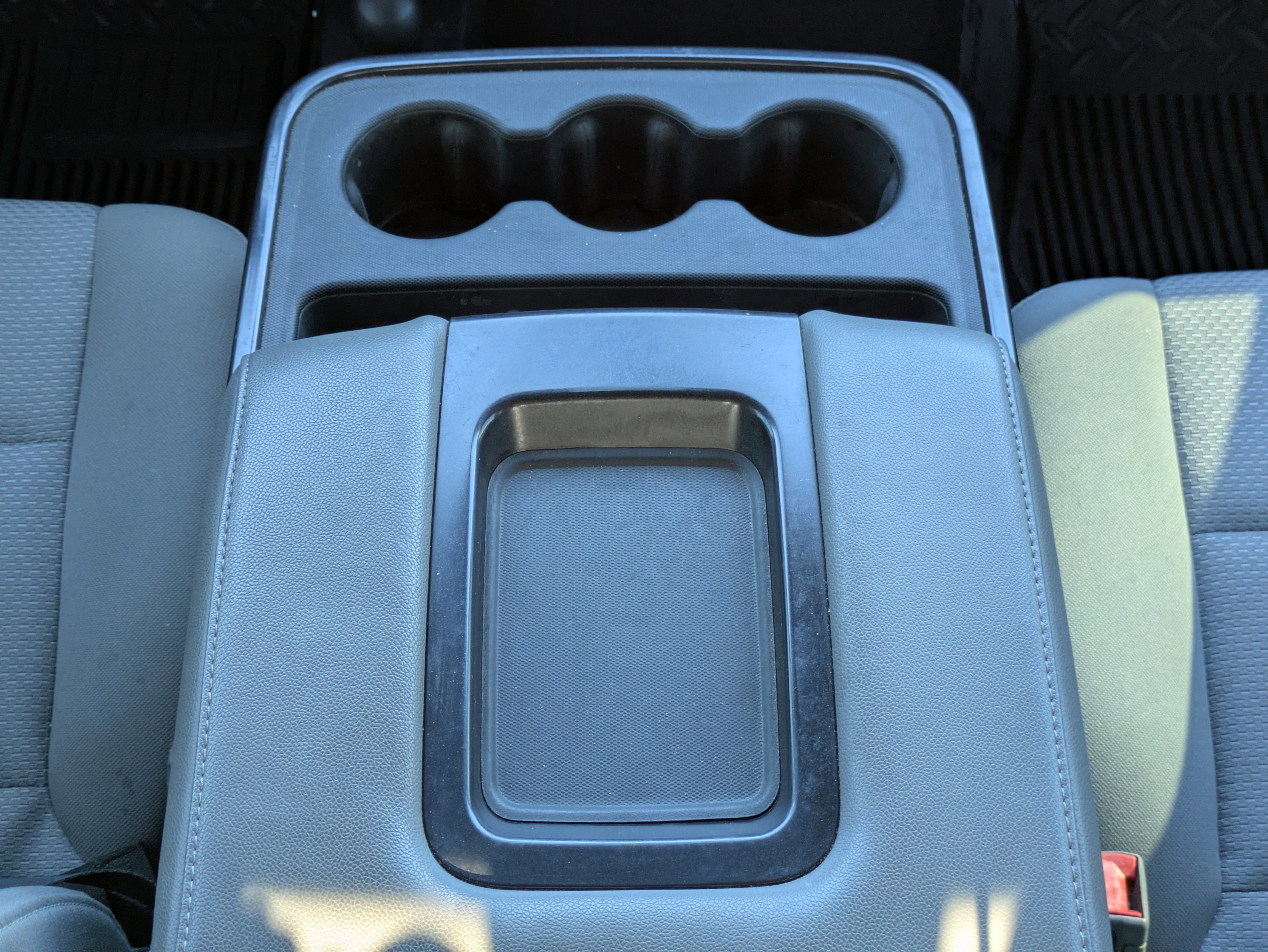 - Seats, front 40/20/40 split-bench, 3-passenger, driver and front passenger manual recline with outboard head restraints and center fold-down armrest with storage. Vinyl has fixed lumbar and cloth has manual adjustable driver lumbar.