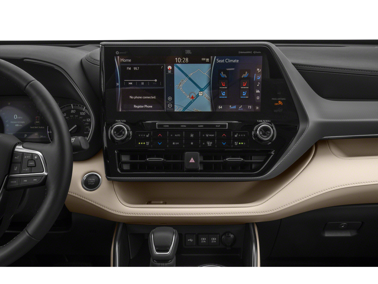 Vaden is pleased to offer this Blizzard Pearl 2020 Toyota Highlander Platinum with Glazed Caramel Leather... Beautifully equipped with 11 Speakers, 20" Painted Alloy Wheels, 3.003 Axle Ratio, 3rd row seats: split-bench, 4-Wheel Disc Brakes, ABS brakes, Air Conditioning, Alloy wheels, AM/FM radio: SiriusXM, Apple CarPlay/Android Auto, Auto High-beam Headlights, Auto-dimming Rear-View mirror, Automatic temperature control, Brake assist, Bumpers: body-color, Delay-off headlights, Driver door bin, Driver vanity mirror, Dual front impact airbags, Dual front side impact airbags, Electronic Rear-View Mirror, Electronic Stability Control, Emergency communication system: Safety Connect with 3-year trial, Four wheel independent suspension, Front anti-roll bar, Front Bucket Seats, Front Center Armrest, Front dual zone A/C, Front fog lights, Front reading lights, Fully automatic headlights, Garage door transmitter: HomeLink, Heads-Up Display, Heated door mirrors, Heated front seats, Heated rear seats, Heated steering wheel, Heated/Ventilated Front Bucket Seats, High Grade LED, Illuminated entry, Knee airbag, Leather Seat Trim, Leather Shift Knob, Low tire pressure warning, Memory seat, Navigation system: Dynamic Navigation with up to 3-year trial, Occupant sensing airbag, Outside temperature display, Overhead airbag, Overhead console, Panic alarm, Panoramic Moonroof, Panoramic View Monitor, Passenger door bin, Passenger vanity mirror, Power door mirrors, Power driver seat, Power Liftgate, Power moonroof, Power passenger seat, Power steering, Power windows, Radio: Premium Audio w/JBL Clari-Fi, Rain sensing wipers, Rear air conditioning, Rear anti-roll bar, Rear reading lights, Rear window defroster, Rear window wiper, Reclining 3rd row seat, Remote keyless entry, Roof rack: rails only, Security system, Speed control, Speed-sensing steering, Split folding rear seat, Spoiler, Steering wheel mounted audio controls, Tachometer, Telescoping steering wheel, Tilt steering wheel, Traction control, Trip computer, Turn signal indicator mirrors, Variably intermittent wipers, and Ventilated front seats! Approved customer communicated additions (repairing minor cosmetic flaw, added accessories, etc.) Prior to delivery will be subject to additional charges. ***All of Our Vaden New Car Pricing is Transparent, the price you see is the price you pay!!**** POWER PACKAGE.