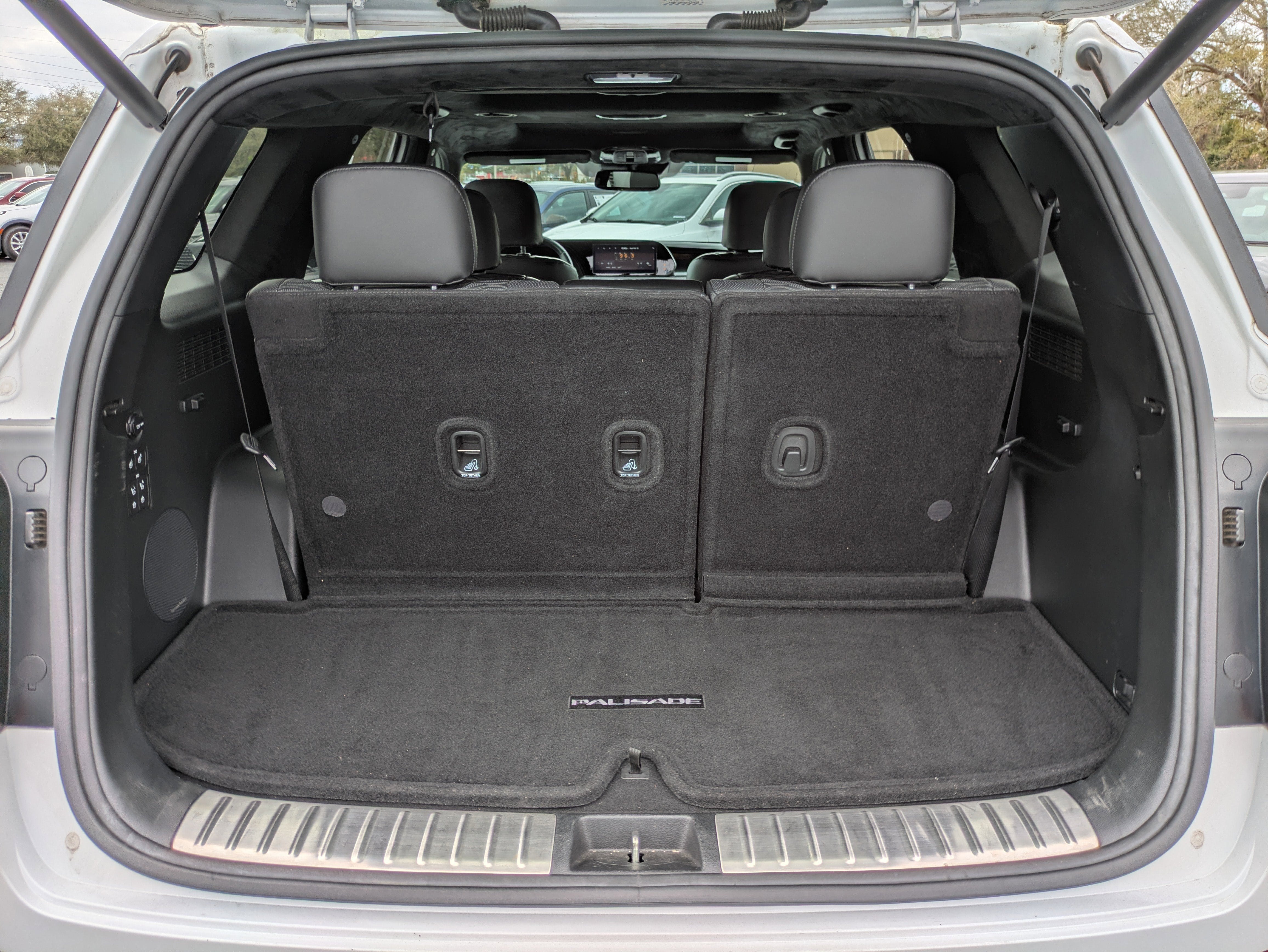 Vaden is pleased to offer this Hyper White 2021 Hyundai Palisade Calligraphy with Black Leather... Beautifully equipped with Option Group 01, 12 Speakers, 3.648 Axle Ratio, 3rd row seats: split-bench, 4-Wheel Disc Brakes, ABS brakes, Air Conditioning, Alloy wheels, AM/FM radio: SiriusXM, Apple CarPlay & Android Auto, Auto High-beam Headlights, Auto-dimming Rear-View mirror, Auto-leveling suspension, Automatic temperature control, Brake assist, Bumpers: body-color, Carpeted Floor Mats, Compass, Delay-off headlights, Driver door bin, Driver vanity mirror, Dual front impact airbags, Dual front side impact airbags, Electronic Stability Control, Emergency communication system: Blue Link Connected Car Service (3-year complimentary subscription), Four wheel independent suspension, Front anti-roll bar, Front Bucket Seats, Front Center Armrest, Front dual zone A/C, Front reading lights, Fully automatic headlights, Garage door transmitter: HomeLink, harman/kardon® Speakers, Heads-Up Display, Heated & Ventilated Front Bucket Seats, Heated door mirrors, Heated front seats, Heated rear seats, Heated steering wheel, Illuminated entry, Knee airbag, Low tire pressure warning, Memory seat, Navigation System, Occupant sensing airbag, Outside temperature display, Overhead airbag, Overhead console, Panic alarm, Passenger door bin, Passenger vanity mirror, Power door mirrors, Power driver seat, Power Liftgate, Power moonroof, Power passenger seat, Power steering, Power windows, Premium Nappa Leather Seat Trim, Radio data system, Radio: AM/FM/MP3 Premium Audio System, Rain sensing wipers, Rear air conditioning, Rear anti-roll bar, Rear reading lights, Rear window defroster, Rear window wiper, Reclining 3rd row seat, Remote keyless entry, Security system, Speed control, Speed-sensing steering, Split folding rear seat, Spoiler, Steering wheel mounted audio controls, Tachometer, Telescoping steering wheel, Tilt steering wheel, Traction control, Trip computer, Turn signal indicator mirrors, Variably intermittent wipers, Ventilated front seats, Ventilated rear seats, and Wheels: 20" x 7.5J Calligraphy Exclusive Alloy! Approved customer communicated additions (repairing minor cosmetic flaw, added accessories, etc.) Prior to delivery will be subject to additional charges. ***All of Our Vaden New Car Pricing is Transparent, the price you see is the price you pay!!**** POWER PACKAGE.